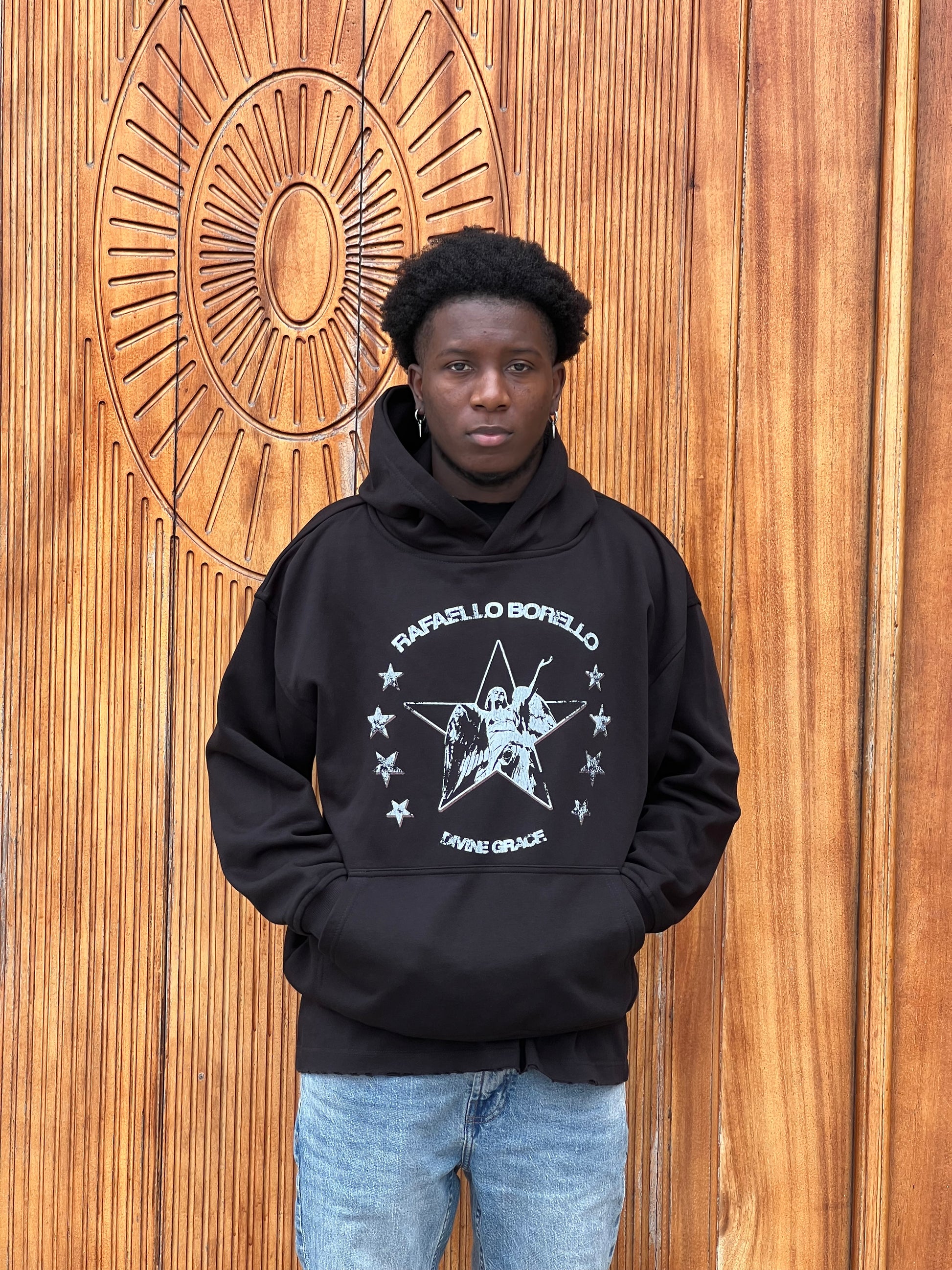 Introducting the Rafaello Borello Hoodie in black color with black front logo. In a world full of uncertainty, Divine Grace becomes our anchor.